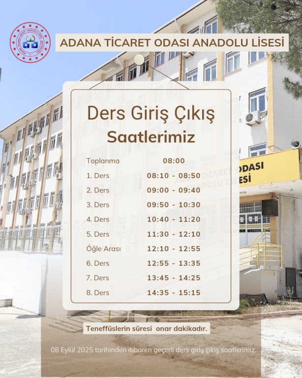 8 Eylül 2025 Tarihinden İtibaren Geçerli Sınıfların Ders Programı